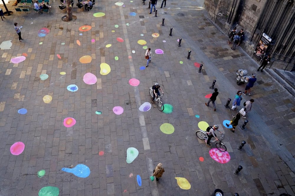 Más de cuatro mil burbujas marcan un recorrido de 10 kilómetros que pasa por los centros y los espacios que ofrecerán, durante dos meses, más de cien actividades centradas en la enfermedad de Alzheimer.